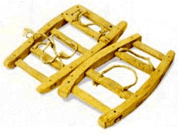 First he mentions home-made snowshoes, which prevent a person from sinking in the soft snow. He also refers to a variant with six sharp iron spikes used for crossing frozen or rocky surfaces. He is even more impressed with an invention which he has "not seen or heard of in any other country", for sliding in winter from high mountain into the valley at high speed.This is how he describes the skis and the activity for which they are used:
