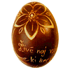 In Slovenia there is variety of design and method of decoration of Easter eggs, each region having developed its own style. In Bela Krajina and Prekmurje the eggs are characterised by geometric and stylised designs. They are decorated with lines (straight, broken, undulating, zig-zag), crosses, spirals, triangles, hearts, circles, dots and the sun. Christian symbols are incorporated; the monograms of Mary (M) and Christ (HIS, ISUS HRISTI SALVATOR). In the western regions of Slovenia, Gorenjska and Primorska, the eggs are decorated with naturalistic forms: clover, daisies, grapes, birds, as well as monstrances. Inscriptions are a more recent phenomenon. They may include: Easter greetings, such as "Vesela Aleluja", sayings, verses, and love messages from girls to boys, such as "Iz srca te ljubim, ti pisanko dam".